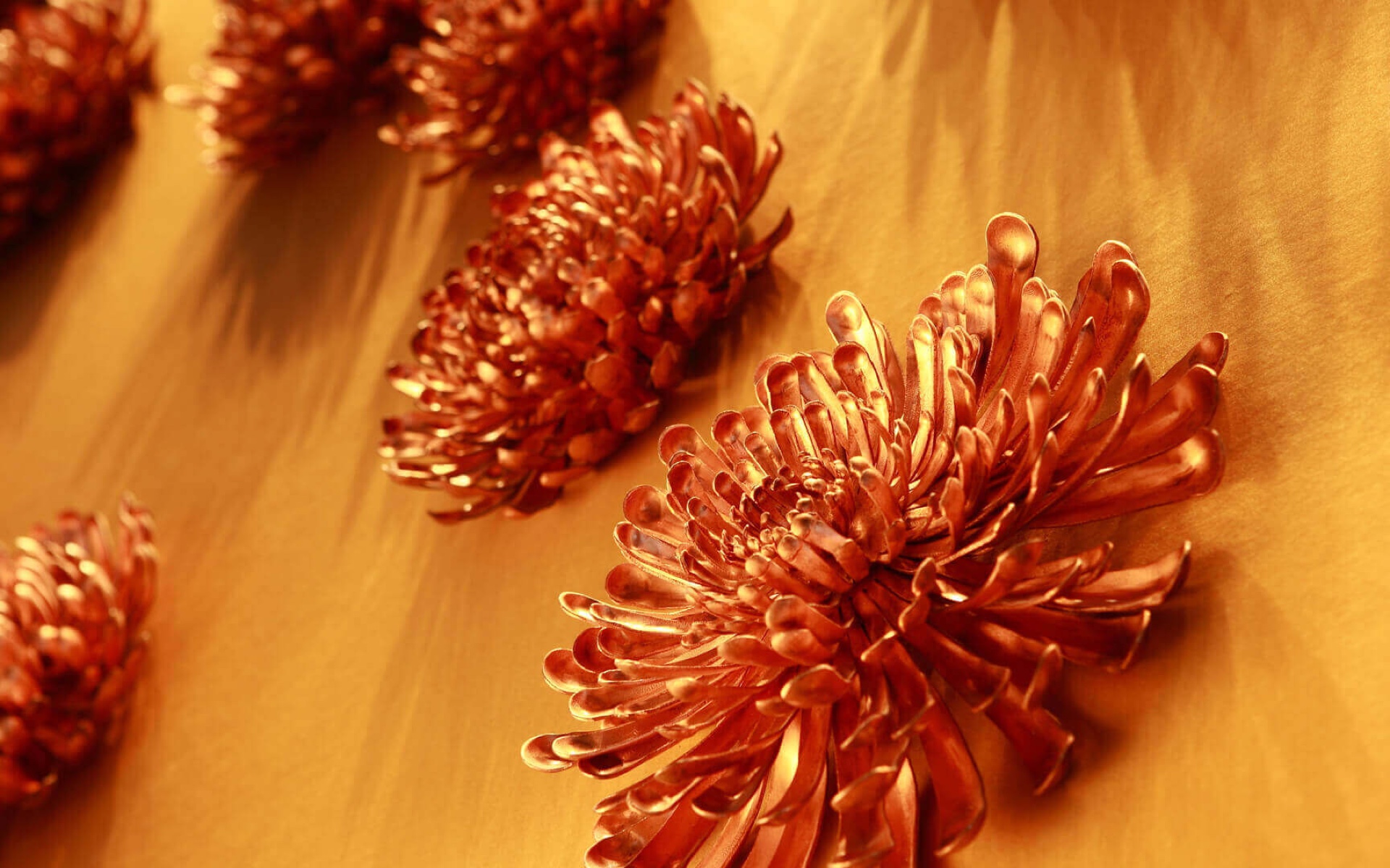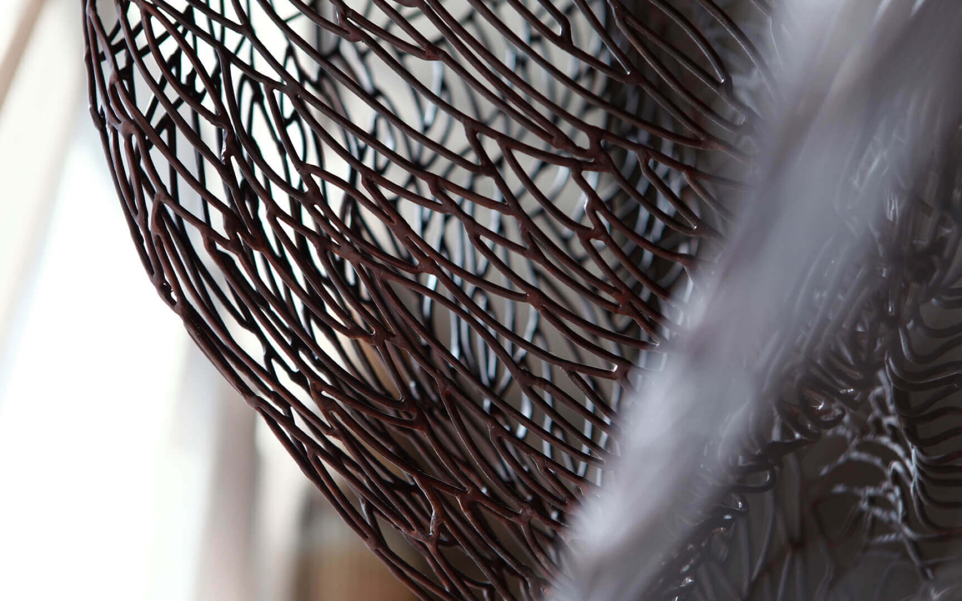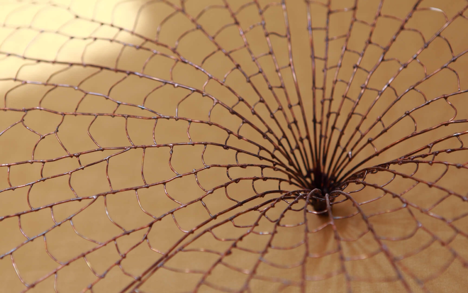 Abstract floral sculpture in brass wire
