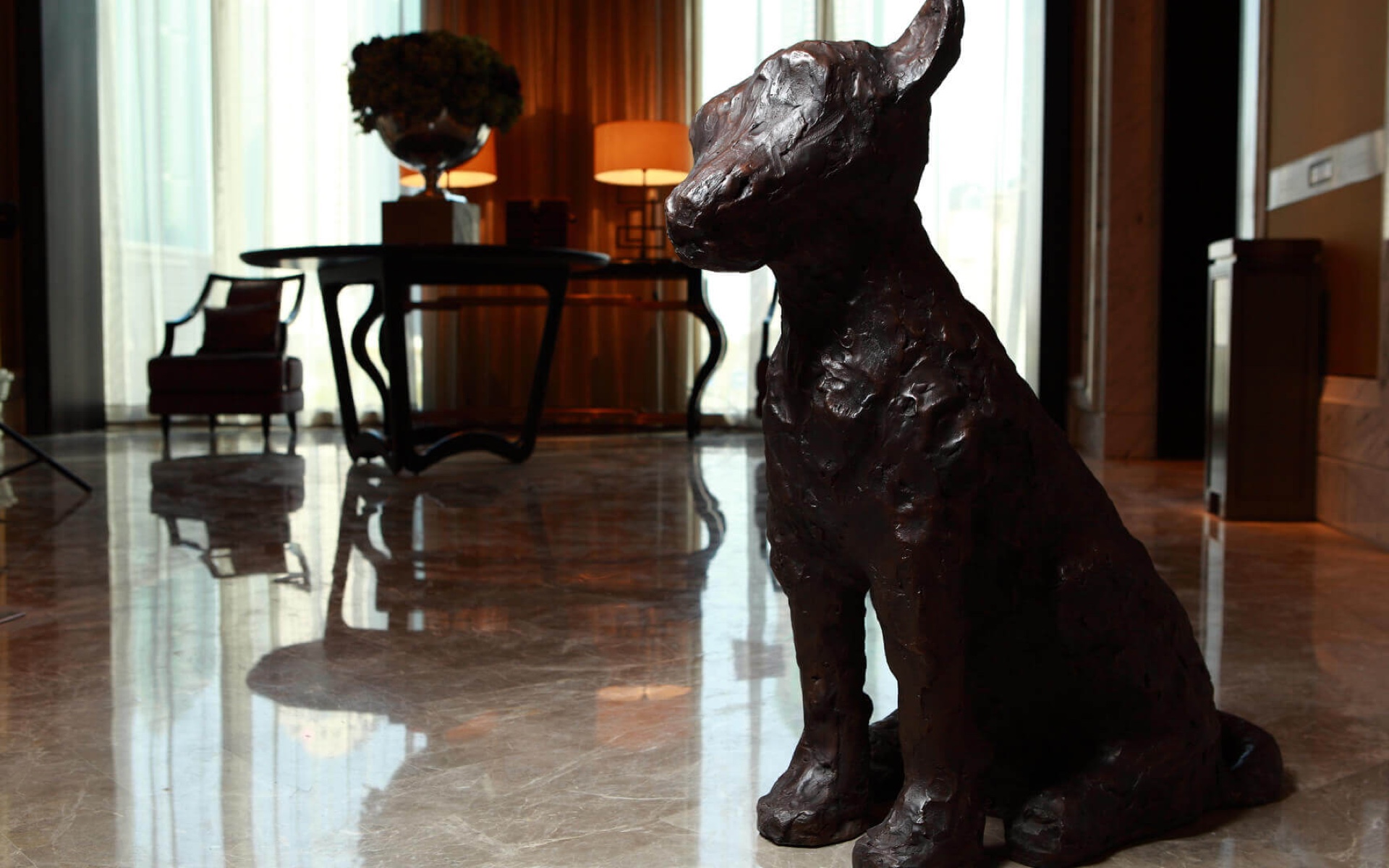 Dog sculpture in cast bronze